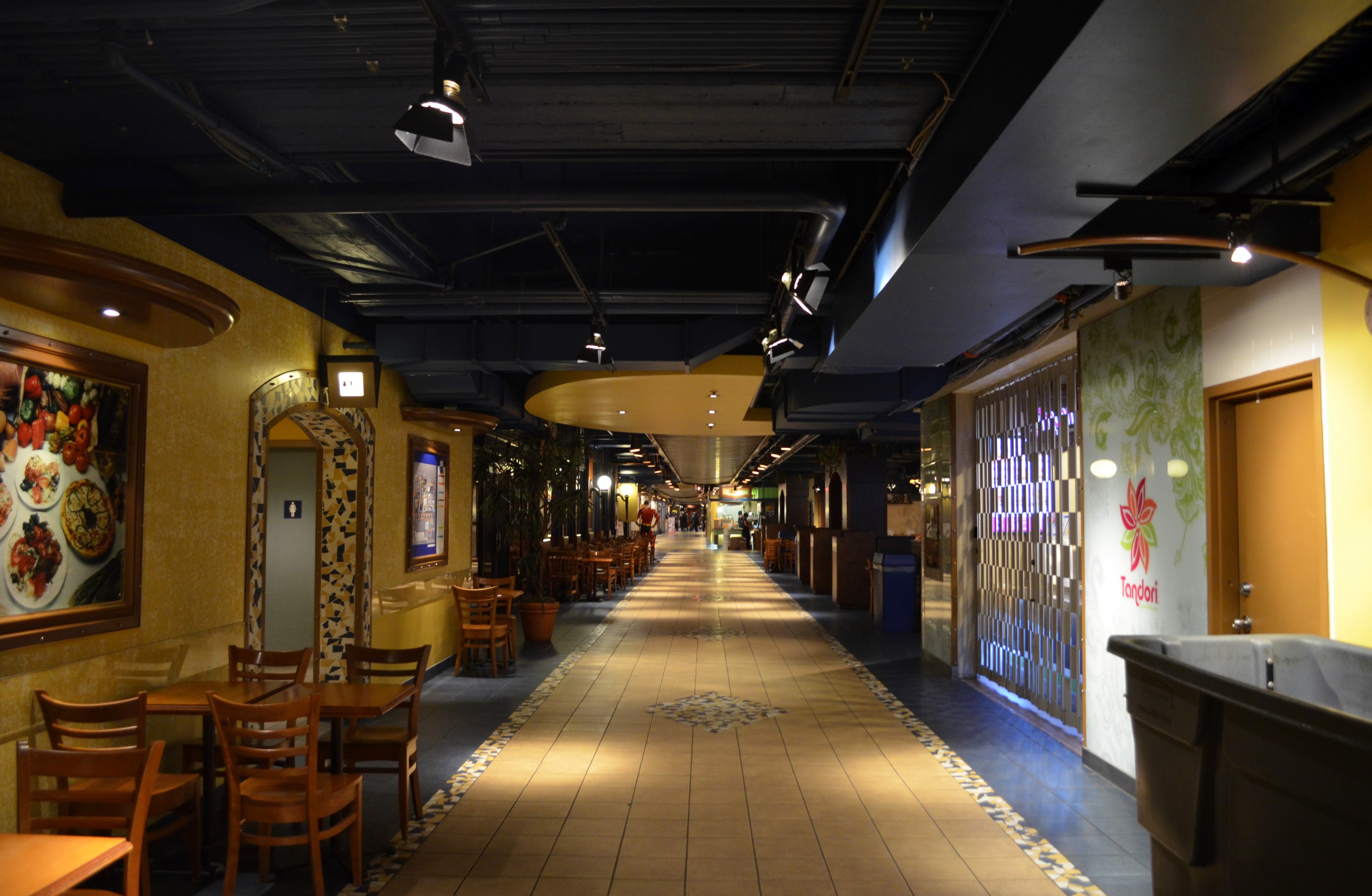 Another major feature of the city is the underground city, the RESO. Yup. Underground. Sci-fi novel implications aside, Montreal boasts about 20 miles of tunnel that connect shops, banks, museums, businesses, and restaurants. While not all of them are actually subterranean, they are all connected, and you don’t have to step outside to get from one section of the RESO to the other. Pretty awesome for a city that regularly experiences sub-zero temperatures in the winter. Doug and I had a blast meandering around in the RESO, checking out shops, trying to find our way from one side of Montreal to the other without setting foot outside. You could literally spend a weekend down there if you wanted to.